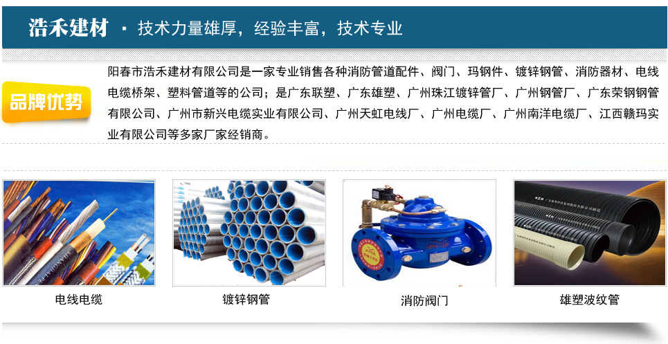 公司主要業(yè)務(wù):HDPE雙壁波紋管,電線電纜,鍍鋅線管線槽,配電箱,防水材料,歡迎撥打咨詢熱線:13829839868